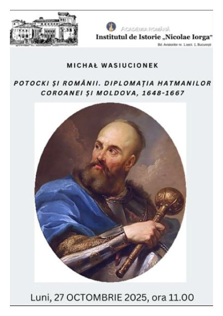 Comunicarea lunii octombrie la Programul II al Institutului „N. Iorga” aparține colegului Michal Wasiucionek, Potocki și românii. Diplomația hatmanilor Coroanei și Moldova, 1648-1667 - Luni 27 octombrie ora 11.