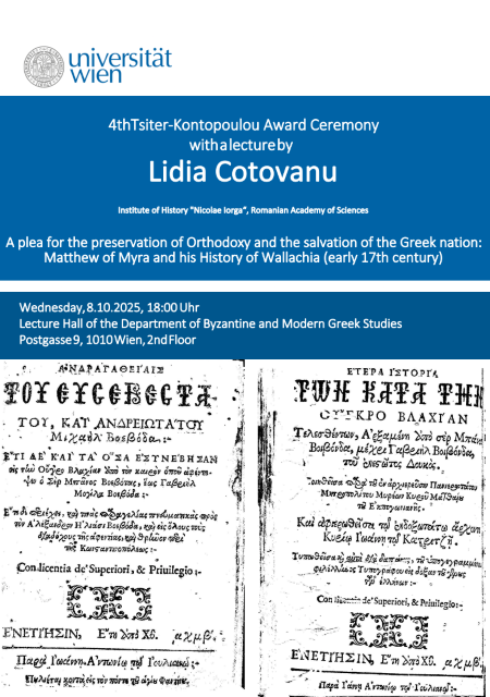 Lidia Cotovanu, Cercatator stiintific III, a primit premiul Tsiter-Kontopoulou din partea Institutului de Studii Bizantine si Neoellenice al Universitatii din Viena pentru contributii la studierea elenismului post-bizantin: https://www.byzneo.univie.ac.at/aktuelles/aktuelles/news/tsk-award-ceremony-81025-1800/