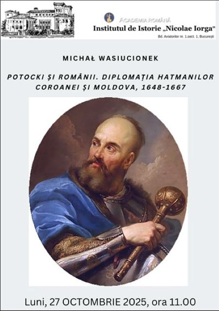 Comunicarea lunii octombrie la Programul II al Institutului „N. Iorga” aparține colegului Michal Wasiucionek, Potocki și românii. Diplomația hatmanilor Coroanei și Moldova, 1648-1667 - Luni 27 octombrie ora 11.