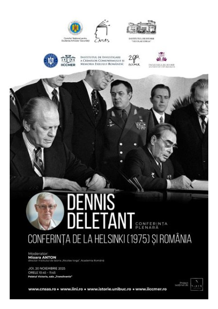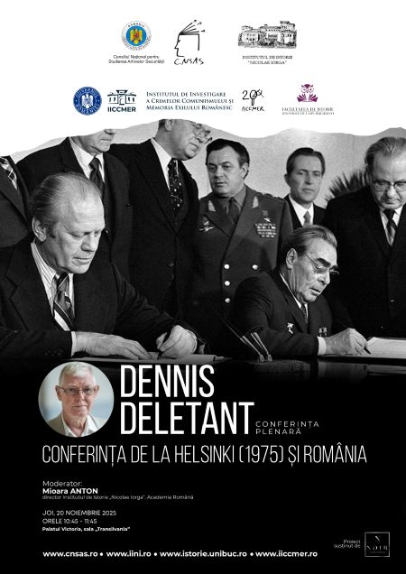 Cu o prelegere dedicate României și Conferinței de la Helsinki (1975), profesorul Deletant va oferi o perspectivă complexă asupra contextului international al anilor ’70 și asupra modului în care regimul de la București a negociat și interpretat Actul Final de la Helsinki.